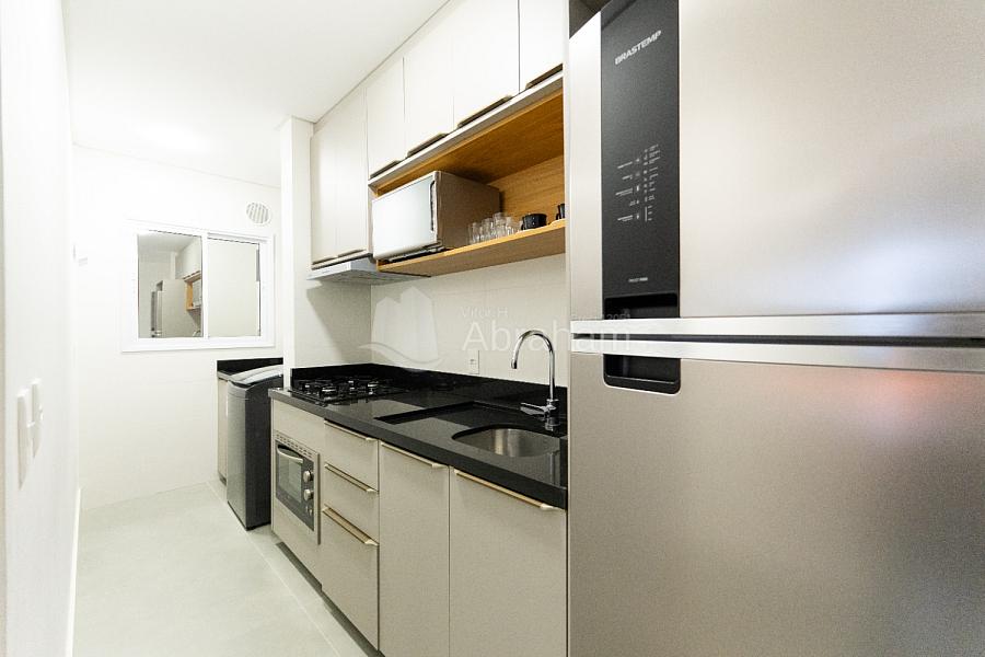 Apartamento alto padrão de acabamento, mobíliado, em ótima localização.
